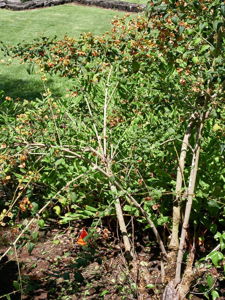 Himalayan forest plant; woody scrub to 10 feet; clusters of russet cup-n-saucer shaped flowers constantly in bloom.